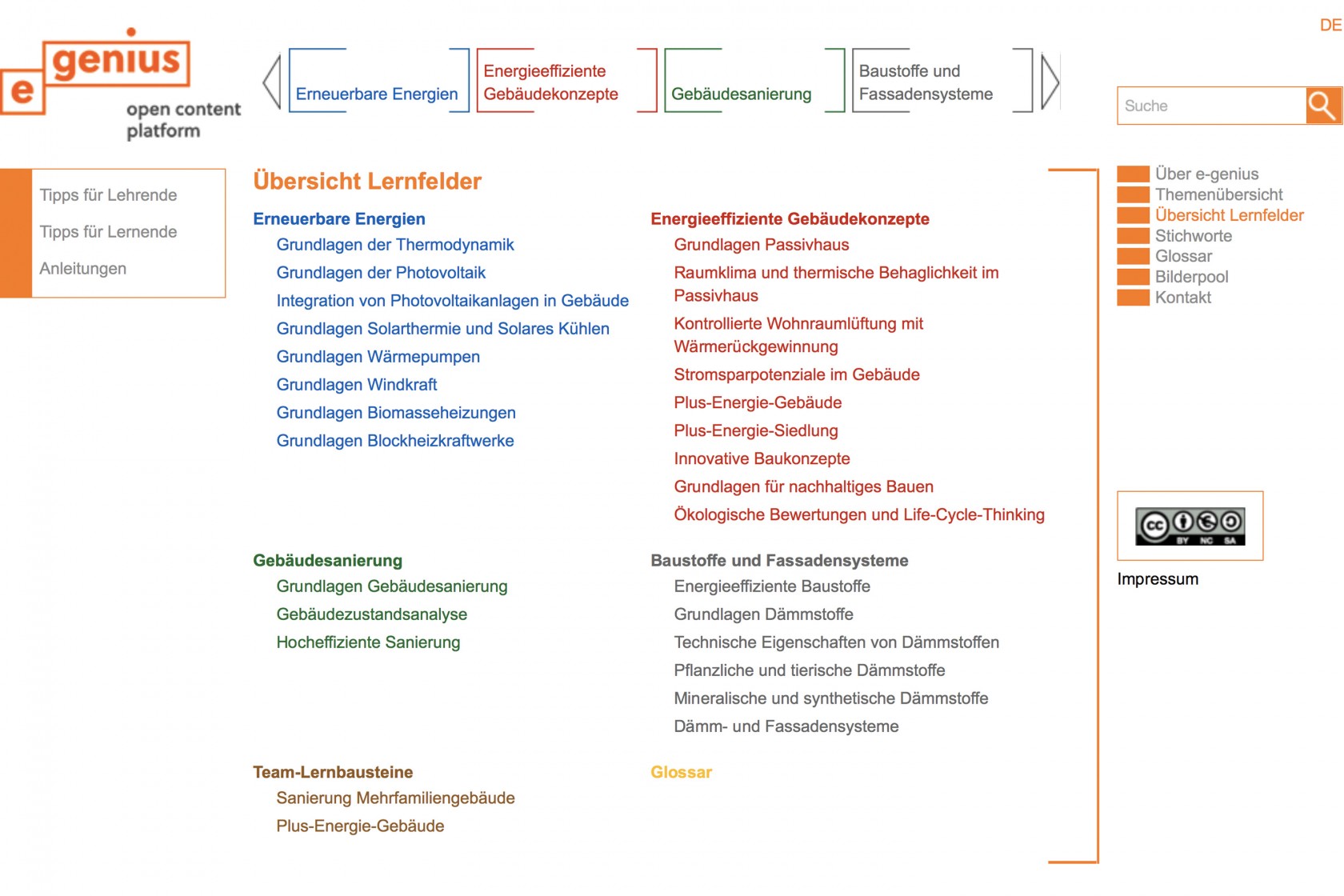 e-genius ist eine Lehr- und Lernplattform mit freien Bildungsmaterialien für Schulen, Fachhochschulen und Universitäten zu den Themen energieeffiziente Gebäude und erneuerbare Energien. Sie bietet anschauliche, praxisbezogene Fachtexte im Ausmaß von 1.000 Textseiten, gegliedert in 200 Lernbausteine und 500 interaktive Aufgaben inklusive Lösungen. Ausgewählte Materialien werden in Kürze in 6 Sprachen verfügbar sein.